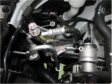 to the proper torque. Check for gas leakage with a leak detector (A).