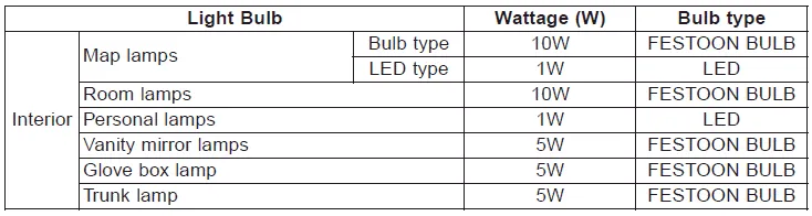Specifications Specification Item Tyep Watt (W) Front Headlamp A Type High beam LED - Low beam LED - Position/DRL LED -