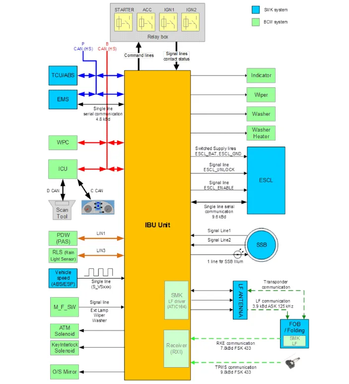 Relay is used to switch the terminal ACC / IGN1 / IGN2. Normally-open relay is operated by smart key unit.