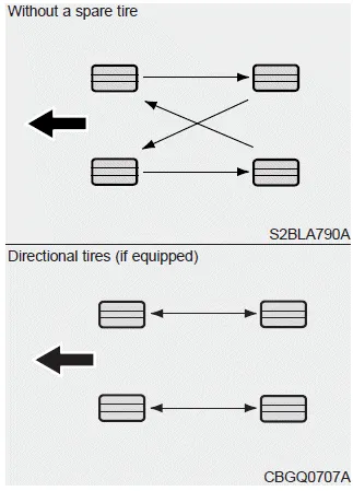 To equalize tread wear, it is recommended that the tires be rotated every 12,000 km (7,500 miles) or sooner if irregular wear develops.