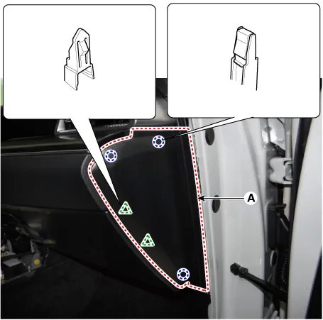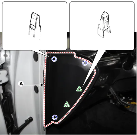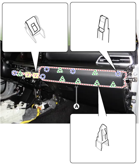Using a remover and remove the crash pad side cover [RH] (A).