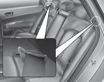 1. Make sure the rear seat belt webbing is in the guide to prevent the seat belt from being damaged.