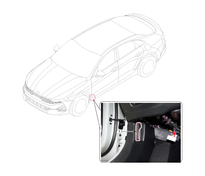 Components and components location Component Location 1. Hood latch assembly Repair procedures Replacement 1.