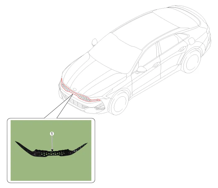 Components and components location Component Location 1. Front bumper beam assembly Repair procedures Replacement Put on gloves to prevent hand injuries.