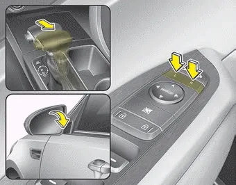 Electric type The outside rearview mirror can be folded or unfolded by pressing the switch when the ignition switch is ACC or ON position as below.