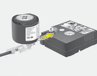 7. Insert the sealant bottle into the housing (5) of the compressor so that the bottle is upright.