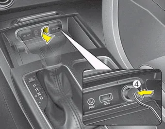 9. Connect between compressor and the vehicle power outlet using the cable and connectors (4).