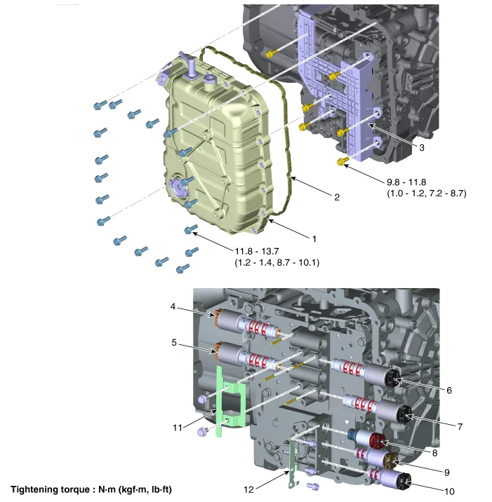 Lift the vehicle after loosening valve body cover upper bolts. |