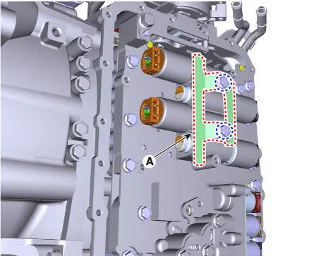 Remove solenoid valve support bracket (A) after loosening the bolts.