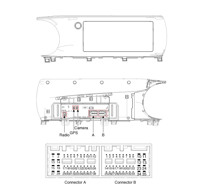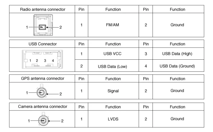 Components and components location Components 1. Audio head unit 2. Display audio head unit Schematic diagrams Connector and Terminal Function Audio 4.