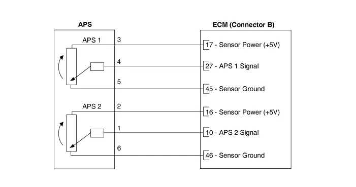 The APS is one of the most important sensors in engine control system, so it consists of the two sensors which adapt individual sensor power and ground line. |
