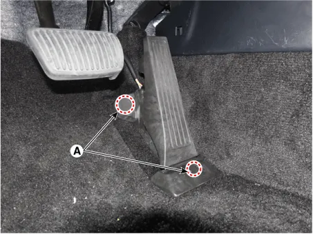 Remove the accelerator pedal module (A) after loosening the mounting bolts.
