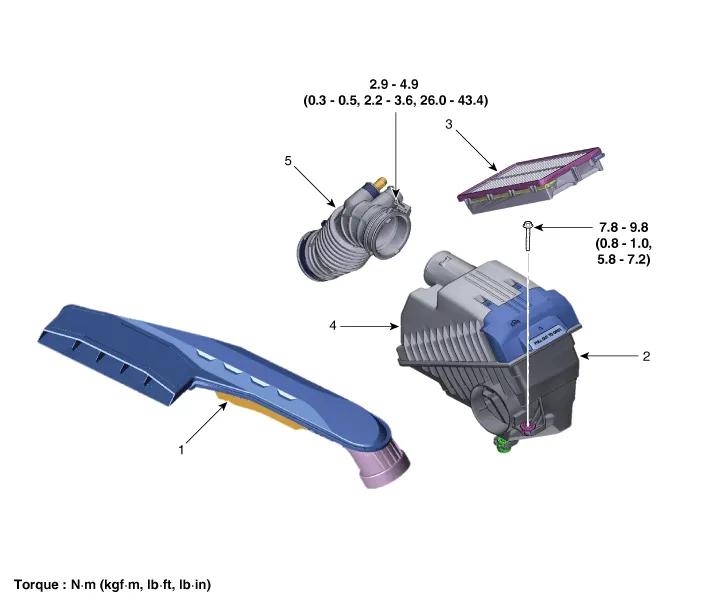 | 1. Air duct 2. Air cleaner body 3. Air cleaner element |
