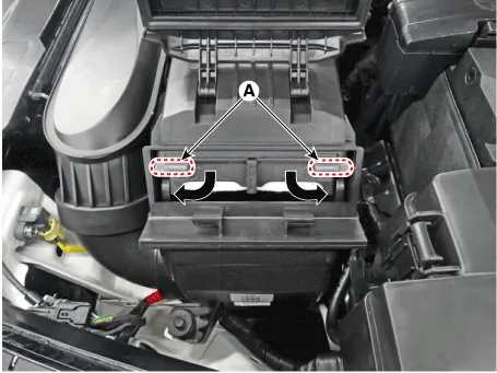 Fully insert the element into the air cleaner and then close the element cover (A) after turning the levers to "LOCK" position.