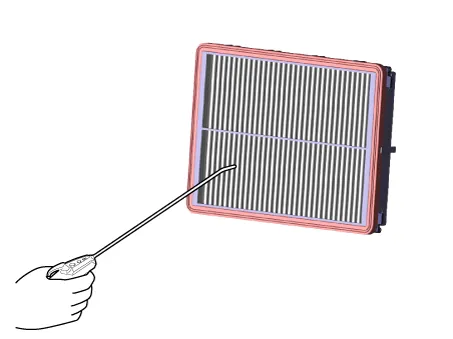 If the air cleaner element needs to be cleaned, blow compressed air as shown in the illustration to clean it.