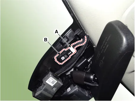Separate the auto defogging sensor connector (A) and remove the auto defogging sensor (B).