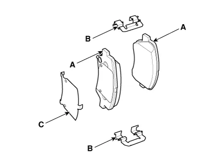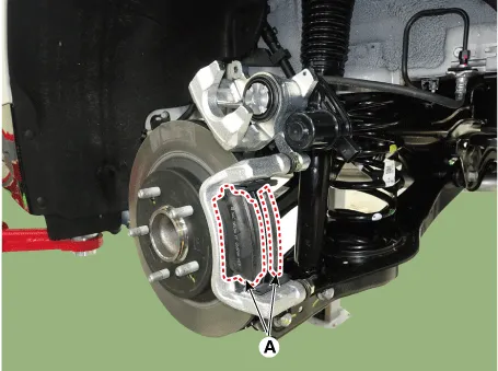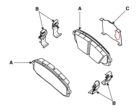Check the pad wear. Measure the pad thickness and replace it, if it is less than the specified value.