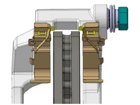 Check that grease is applied to sliding contact points and check the pad and backing metal for damage. |
