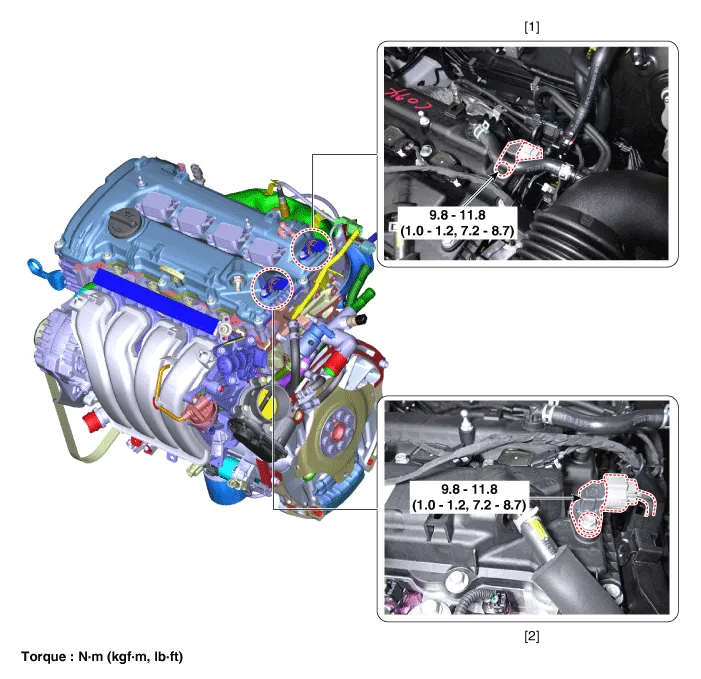 DON’T remove the camshaft position sensor during engine running or right after engine stops, or a scald by the flowed out engine oil may occur. |