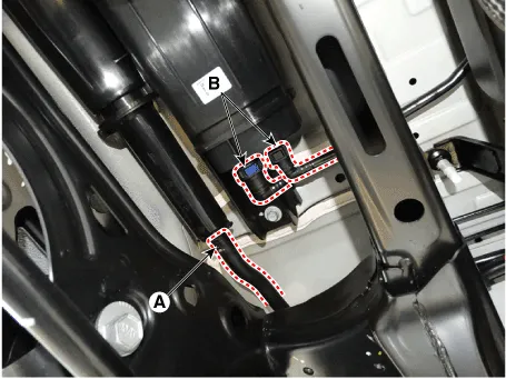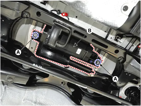 Disconnect the vent hose quick-connector (A), the vapor hose quick-connector (B) from the canister.