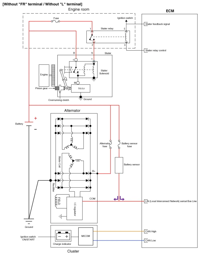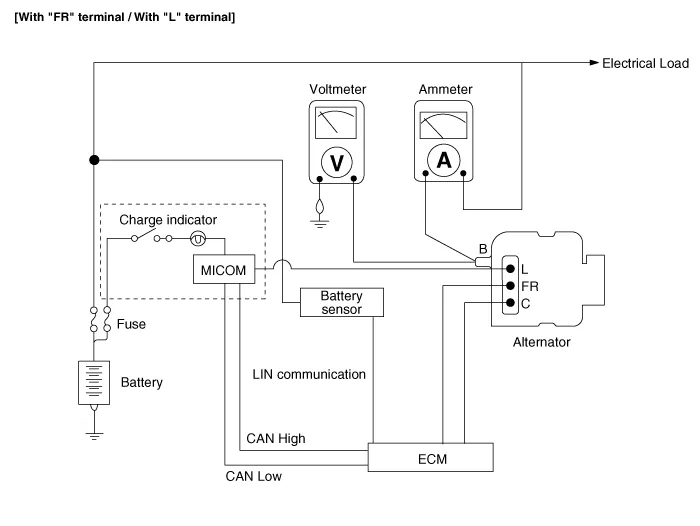 Defective alternator L terminal output power |