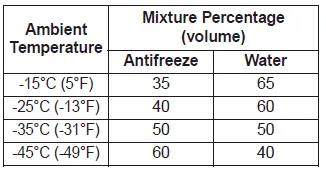 The high-pressure cooling system has a reservoir filled with year round antifreeze coolant. The reservoir is filled at the factory. Check the antifreeze protection and coolant level at least once a year: at the beginning of the winter season, and before traveling to a colder climate.