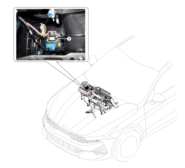 Components and components location Components Location 1. Intake actuator Description and operation Description The intake actuator is located at the blower unit. It regulates the intake door by a signal from the control unit.
