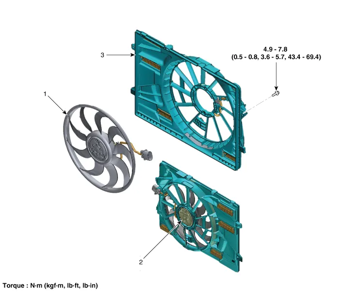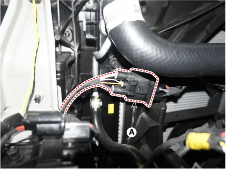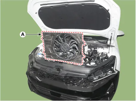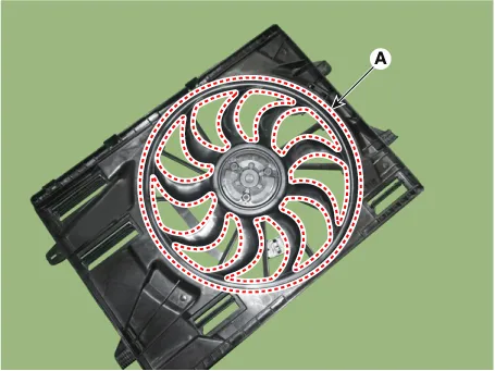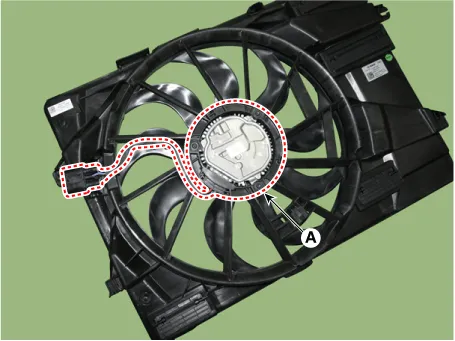 Remove the cooling fan and cooling fan motor (A) from the cooling fan shroud.
