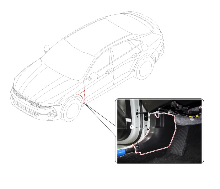 Remove the front door scuff trim. (Refer to Interior Trim - "Door Scuff Trim") |