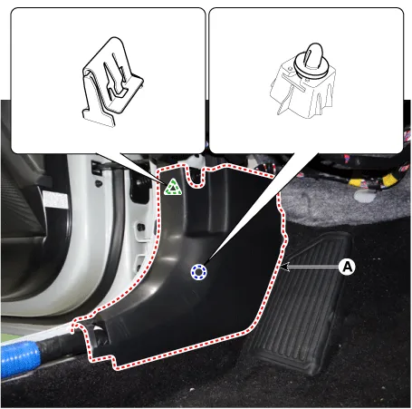 Using a screwdriver or remover, remove the cowl side trim (A).