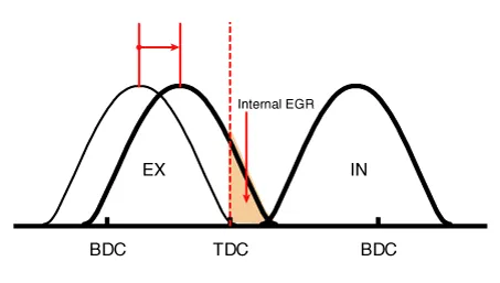 By controlling CVVT, the valve over-lap or under-lap occurs, which makes better fuel economy and reduces exhaust gases (NOx, HC) and improves engine performance through reduction of pumping loss, internal EGR effect, improvement of combustion stability, improvement of volumetric efficiency, and increase of expansion work.