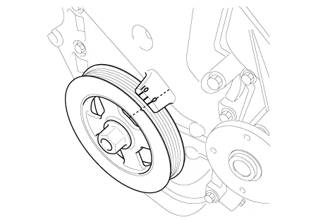 Remove the crankshaft damper pulley. (Refer to Drive Belt System - “Crankshaft Damper Pulley”) |