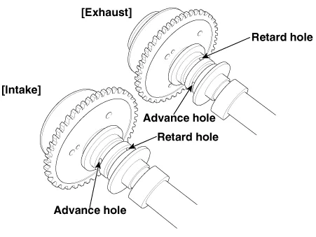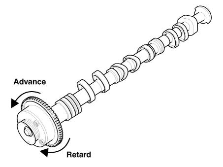 Continuous Variable Valve Timing (CVVT) system advances or retards the valve timing of the intake and exhaust valve in accordance with the ECM control signal which is calculated by the engine speed and load.