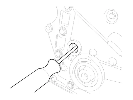Using a suitable tool, move the tensioner arm to align the tensioner bolt hole with the service hole.