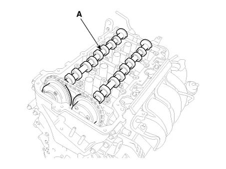 Components and components location Components 1. Camshaft bearing cap 2. Camshaft front bearing cap 3. Exhaust camshaft 4.