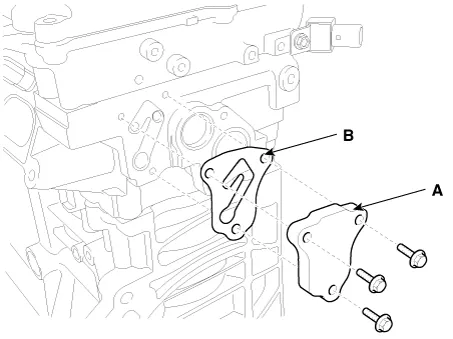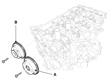 Remove the intake CVVT assembly (A) and exhaust CVVT assembly (B).