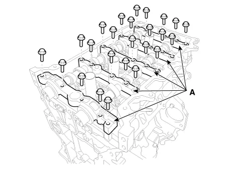 Check if the steel ball (A) is installed in the cylinder head when replacing the cylinder head.
