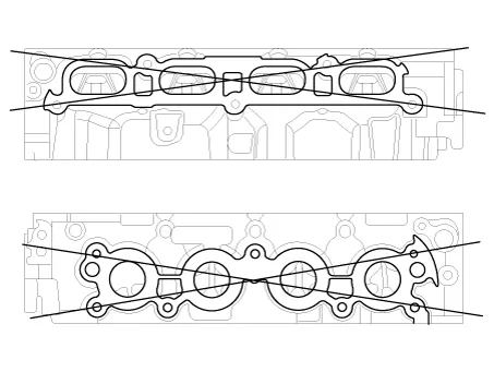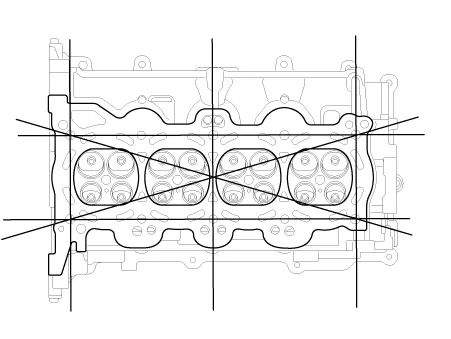 Inspect for cracks. Check the combustion chamber, intake ports, exhaust ports and cylinder block surface for cracks. If cracked, replace the cylinder head. |