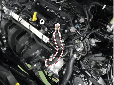 Disconnect the positive crankcase ventilation (PCV) hose (A).