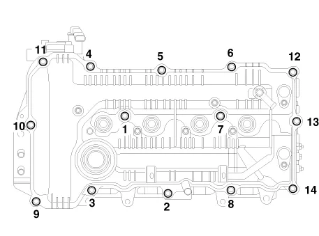Components and components location Components 1. Camshaft bearing cap 2. Camshaft front bearing cap 3. Exhaust camshaft 4.