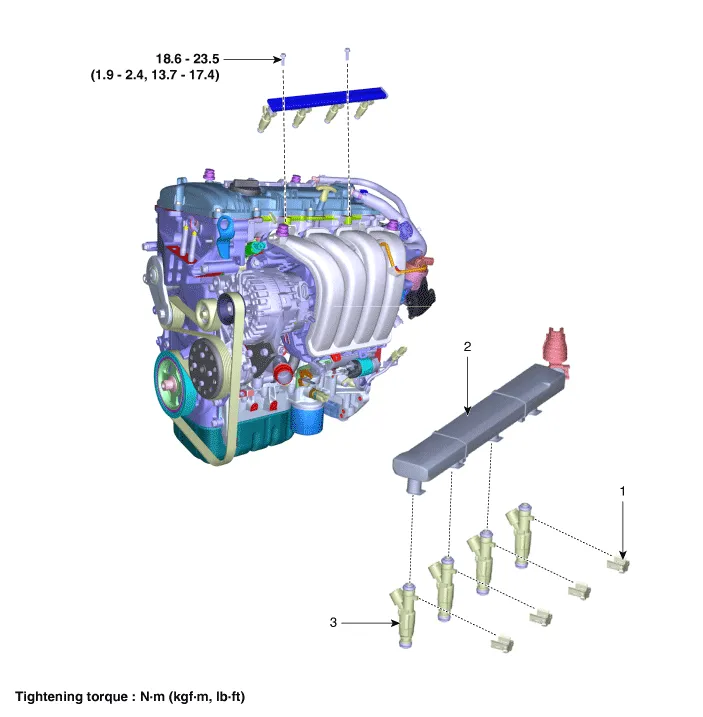 Specifications Specification Item Specification Coil Resistance (Ω) 14.5 [20°C(68°F)] Description and operation Description • Based on information from various sensors, the ECM can calculate the fuel amount to be injected.