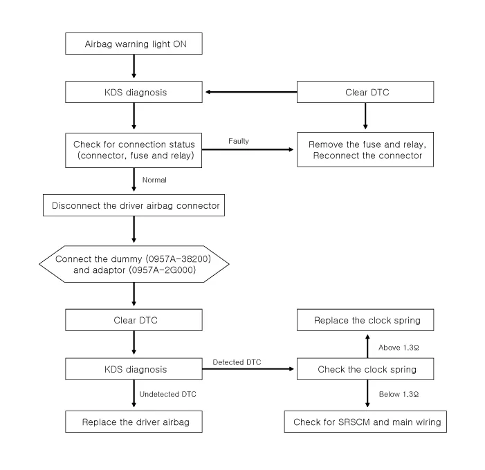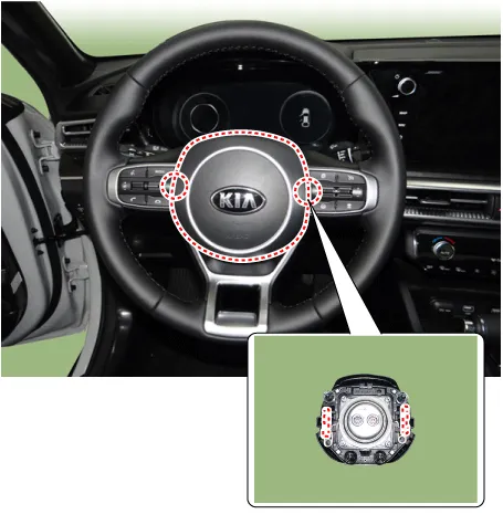 The Driver Airbag (DAB) is installed in the steering wheel and electrically connected to SRSCM via the clock spring. It protects the driver by deploying the airbag when frontal crash occurs. The SRSCM determines deployment of the Driver Airbag (DAB).