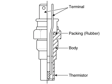 After immersing the thermistor of the sensor into engine coolant, measure resistance between ECTS signal terminal and ground terminal. |