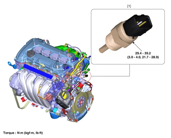Disconnect the engine coolant temperature sensor connector. |