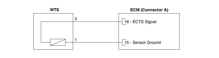 The reference +5V is supplied to the ECTS via a resistor in the ECM. That is, the resistor in the ECM and the thermistor in the ECTS are connected in series. |