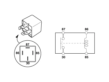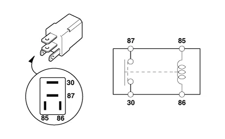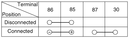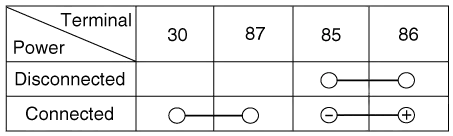 After supplying power between No. 85 and 86 power relay terminals, check that there is continuity between No. 30 and 87 terminals. |
