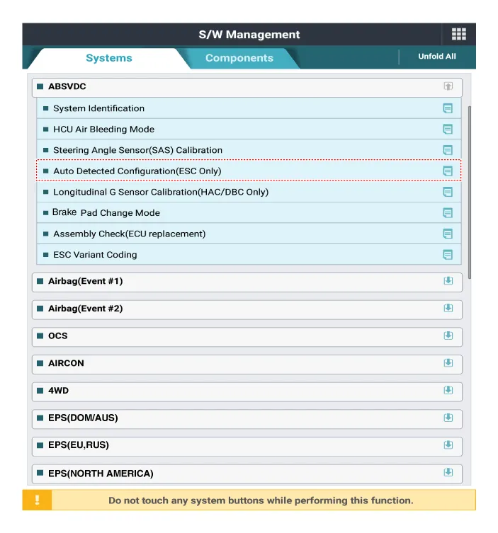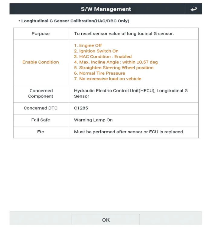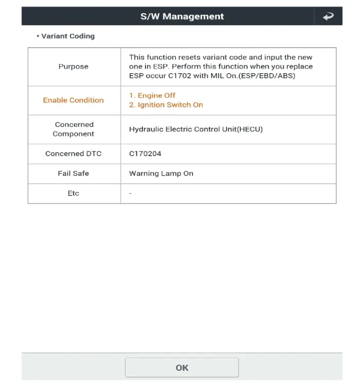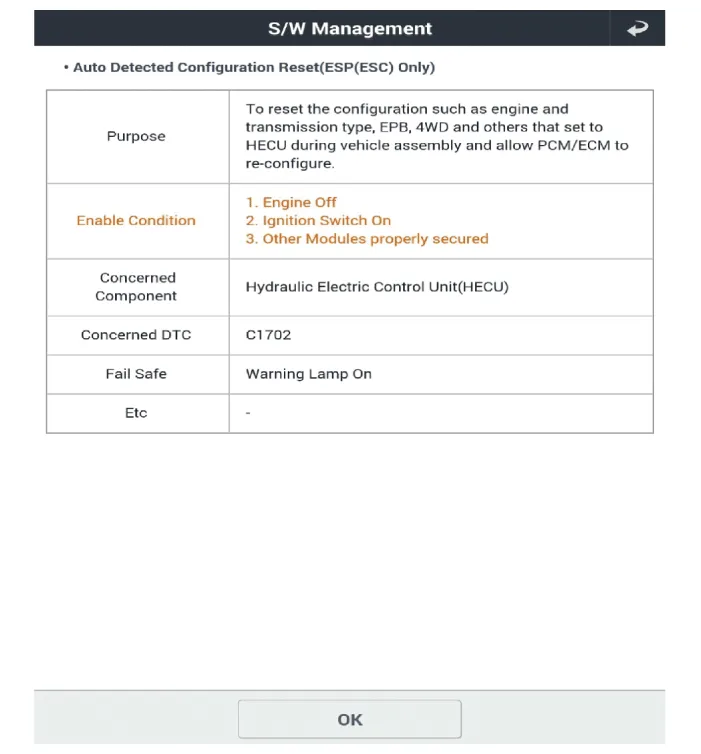 Select the "vehicle model" and "ABS/ESC" on KDS vehicle selection screen, then select OK.