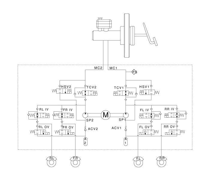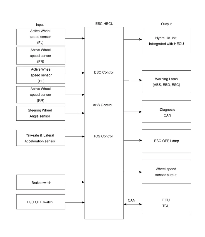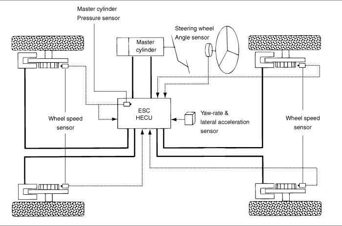 ESC system consists of ABS/EBD, TCS and AYC functions.