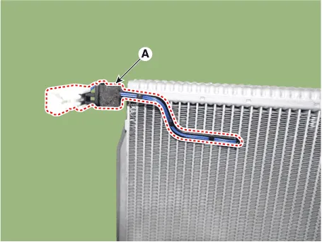 Separate the evaporator temperature sensor (A) from the evaporator core.