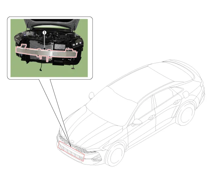 Components and components location Component Location 1. Radiator grill Repair procedures Replacement • When removing with a flat-tip screwdriver or remover, wrap protective tape around the tools to prevent damage to components.